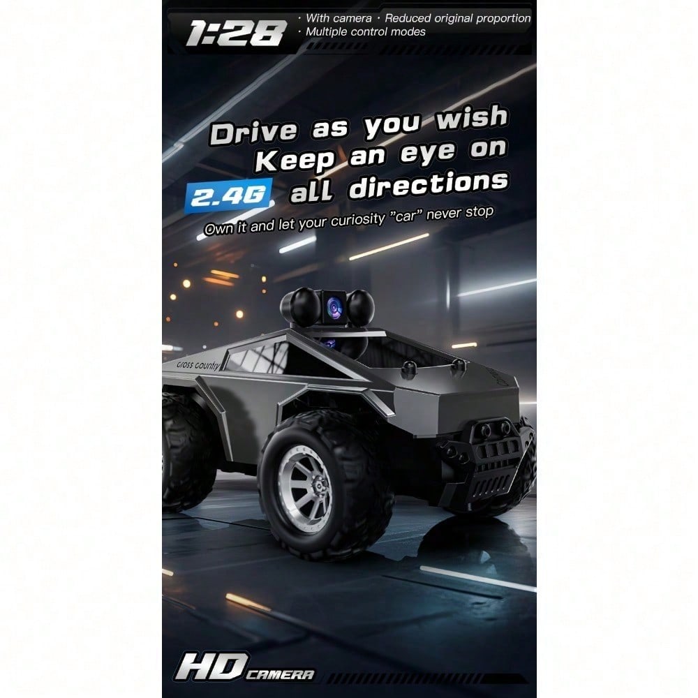 Experience next-level racing with this 1:28 Scale RC Car with HD Camera — a perfect blend of speed, style, and smart tech! Equipped with a real-time WiFi camera, this RC buggy lets you capture thrilling driving moments from a first-person view. The LED headlights, shock-absorbing tires, and durable off-road body ensure smooth performance on various terrains. Its 2.4GHz remote control system provides stable signal and precise handling, while the rechargeable battery supports long playtime. Compact yet powerful, it’s ideal for both kids and adults who love racing challenges or tech-driven toys. Great Gift Choice for Christmas, New Year, or any Holiday! Whether for indoor racing or outdoor adventures, this high-speed RC car delivers endless fun and excitement — the perfect gift for thrill-seekers and tech lovers alike. Power Supply: USB Charging Operating Voltage: 36V and below Battery Property: Rechargeable Battery Rechargeable Battery: Lithium Battery -- Other Series Applicable Age Group: 8 years old and above Energy Source: Battery Powered Material: Plastic Control Method: Remote Control Wireless Property: With App Function