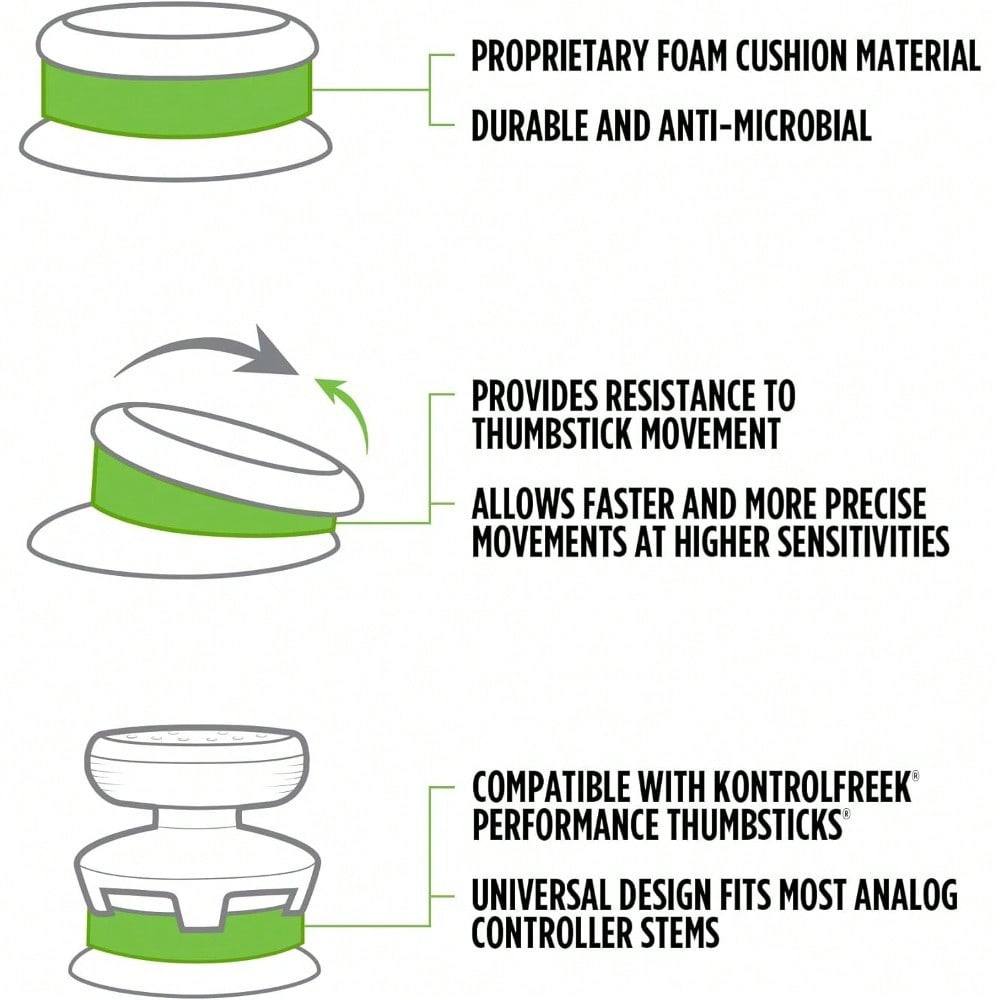 Product description Optimize your aim with the Aim Boost Kit – Galaxy Edition. When used together Performance Thumbsticks help you make smaller, more precise in-game movements with better comfort and control while Precision Rings provide resistance when gaming to allow you to increase your in-game sensitivity increasing your accuracy. Galaxy boasts a beautiful purple-on-silver color scheme and an original laser-etched design that offers exceptional grip. With a versatile dual-height combination, Galaxy stands up to the grueling demands of competitive online play, whether you’re fighting for the battlefield, the city, or the universe. Precision Rings by KontrolFreek are flexible, moisture wicking material is resistant to hand and finger oils, dampens sound and quickly recovers its original shape so you can use it over and over again at maximum sensitivity, The Aim Boost Kit – Galaxy Edition includes Galaxy Performance Thumbsticks and one of each resistance-level of Precision Rings.